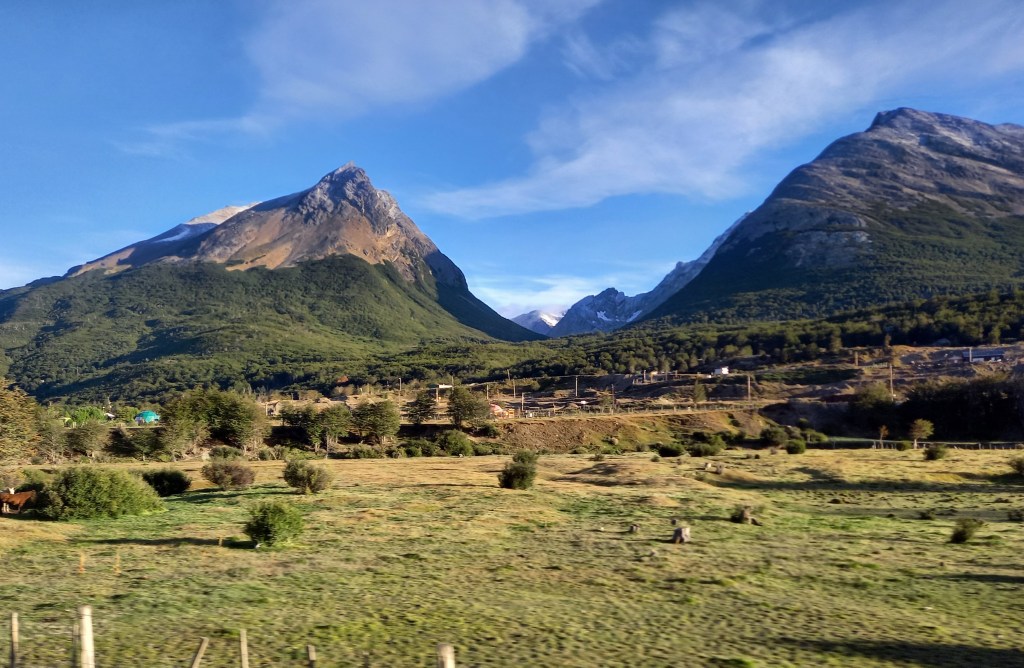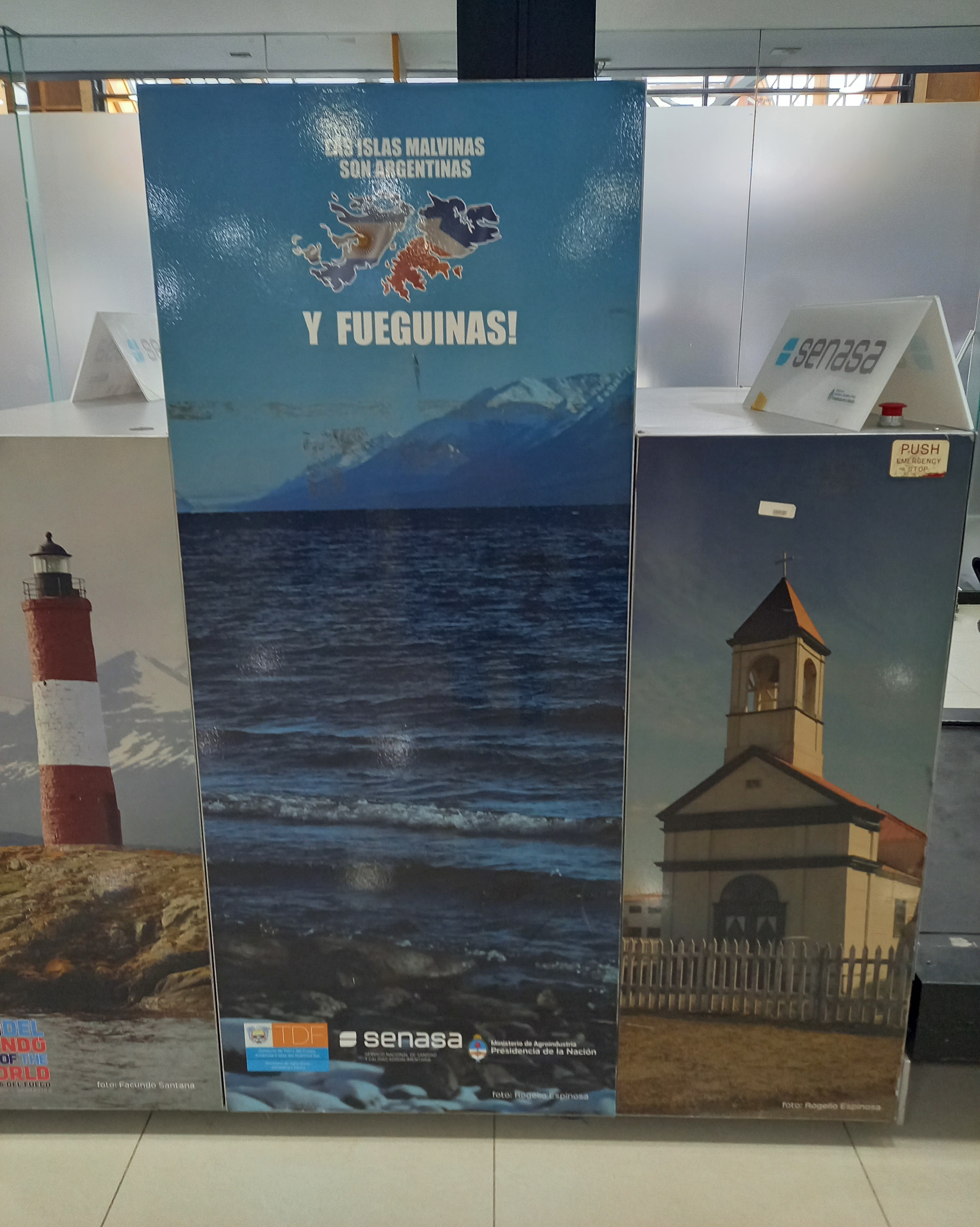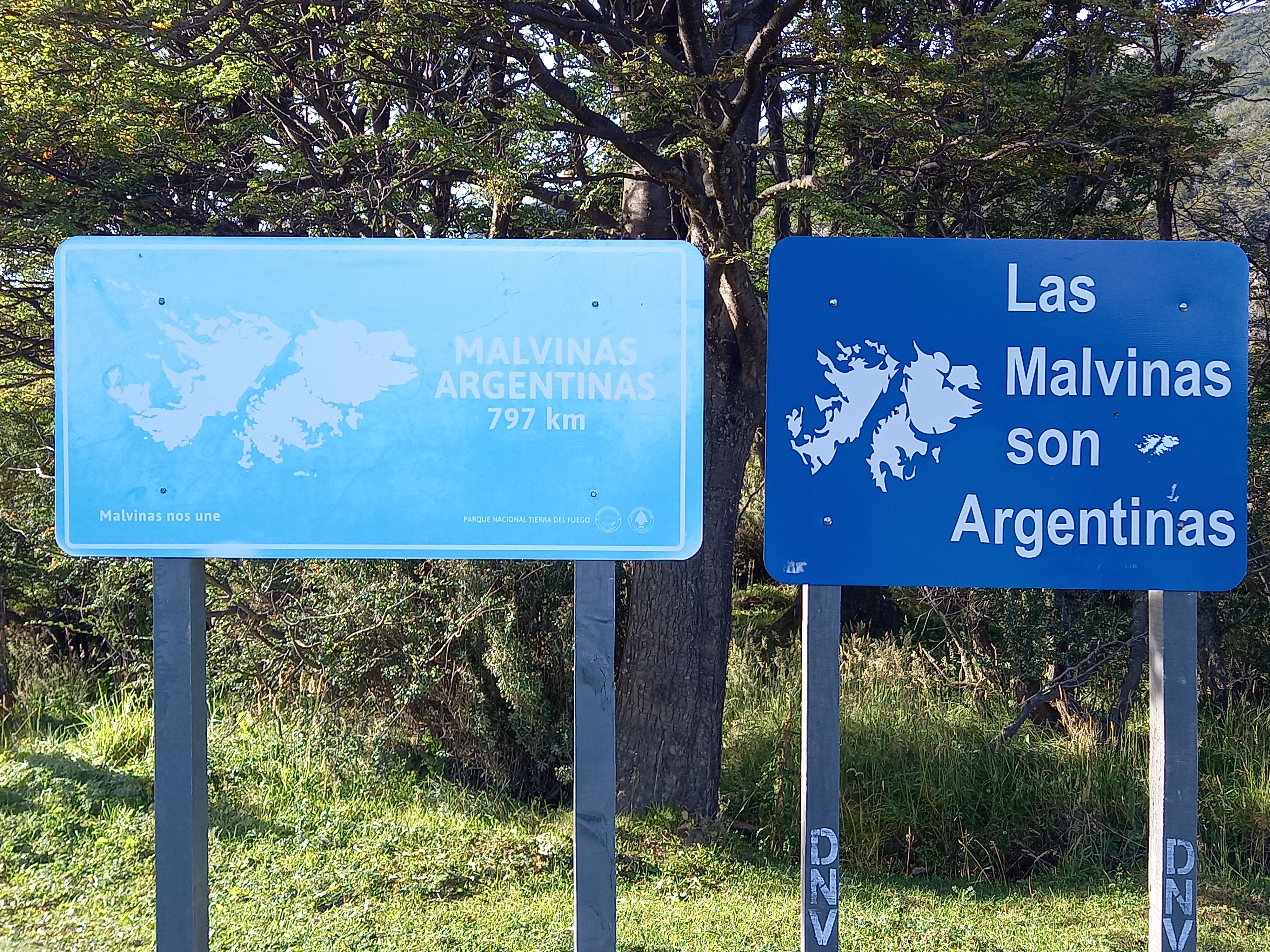 Ed eccoci, dopo un’altra oretta di volo o poco più, al punto più a sud del nostro percorso, che poi è anche uno dei sud più sud del mondo: Ushuaia, sulla punta estrema della Terra del Fuoco, a “soli” 1200 km dall’Antartide. Non siamo lontani (800 km) neanche dalle Malvinas, che infatti più che mai qui vengono rivendicate: l’aeroporto si chiama Malvinas Argentinas e, se per caso ci fossero ancora dubbi, un cartellone proclama che le Malvinas sono argentine e “fueguinas”, appartengono cioè alla Tierra del Fuego.