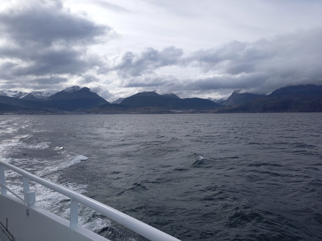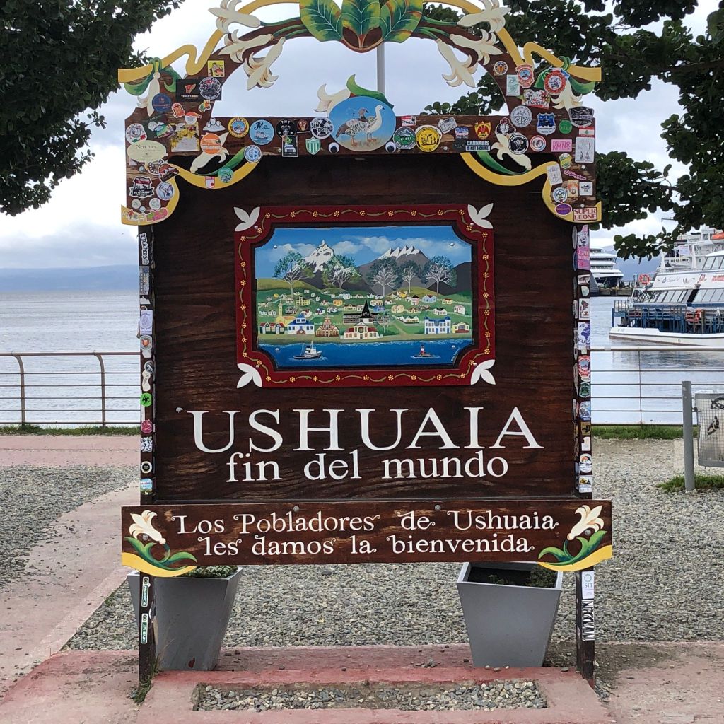 La parola Ushuaia proviene dalla lingua yamana: ush (‘al fondo’) e waia (‘baia’ o ‘caletta’), e significa quindi ‘baia profonda’. Il primato di città più a sud del mondo è contestato dal Cile, perché sull’isola Navarino, che vedremo oggi navigando nel Canale di Beagle, c’è Puerto Williams che è più a sud, ma si tratta di un piccolo insediamento di neanche 2000 abitanti.
