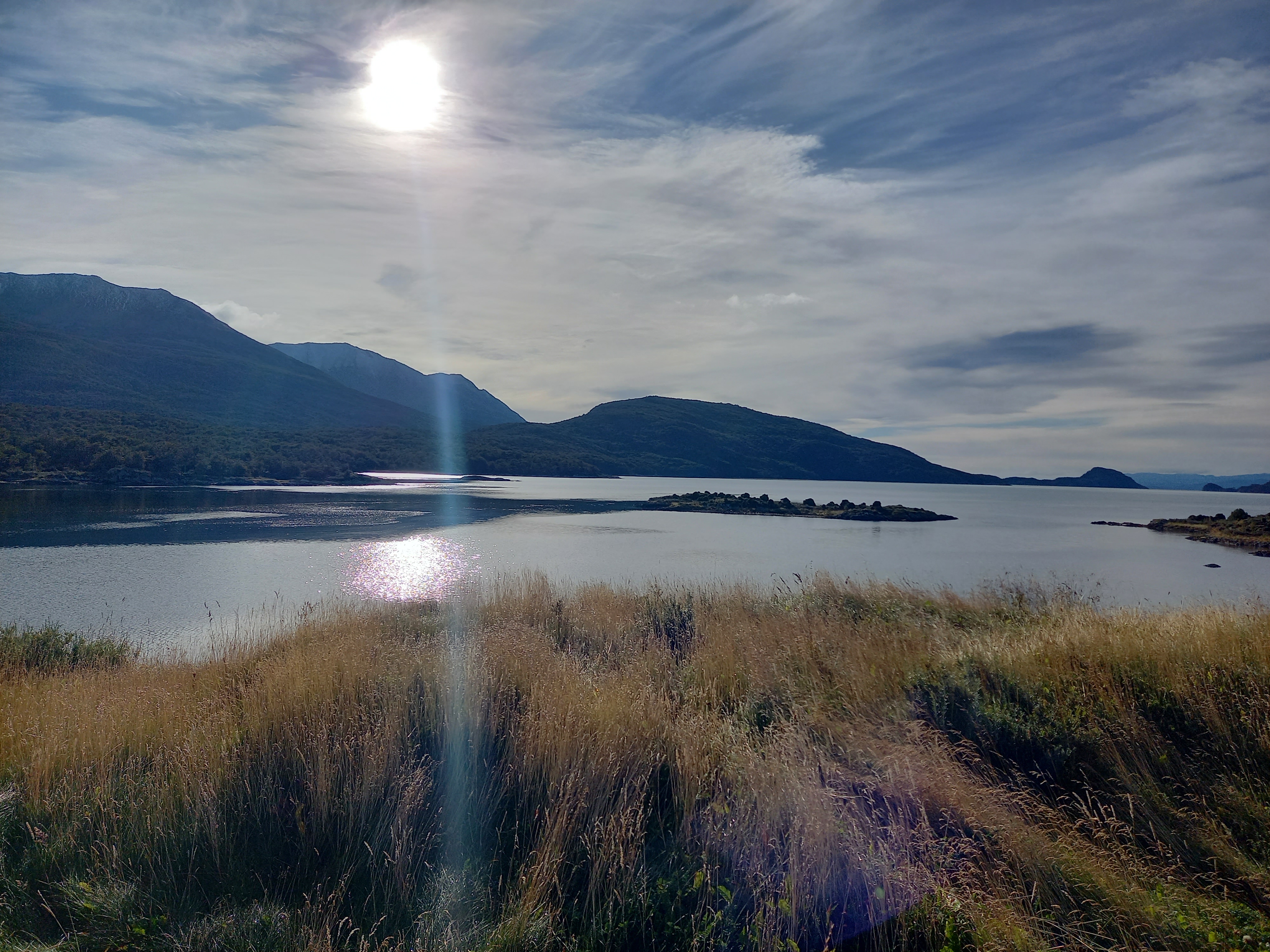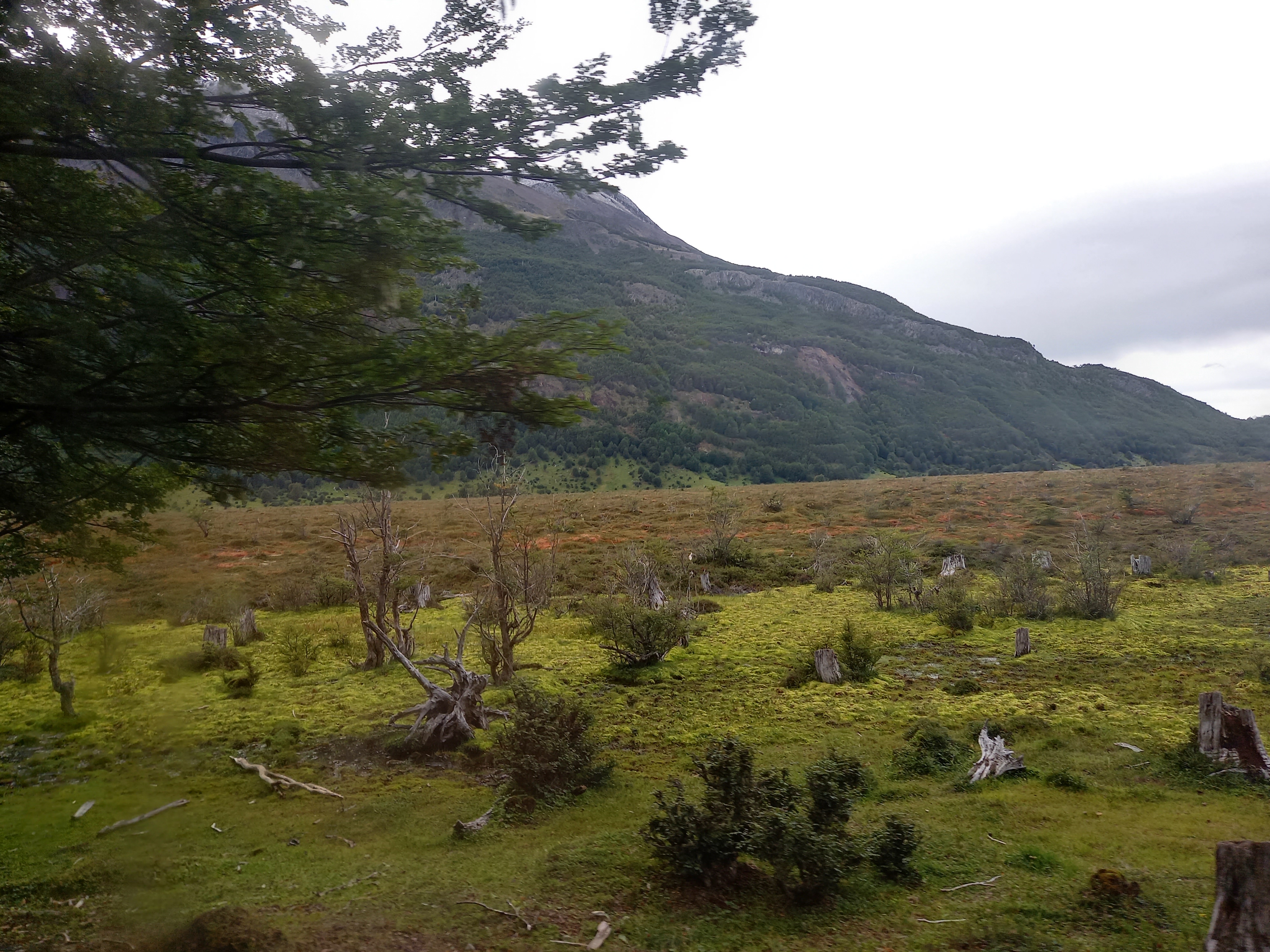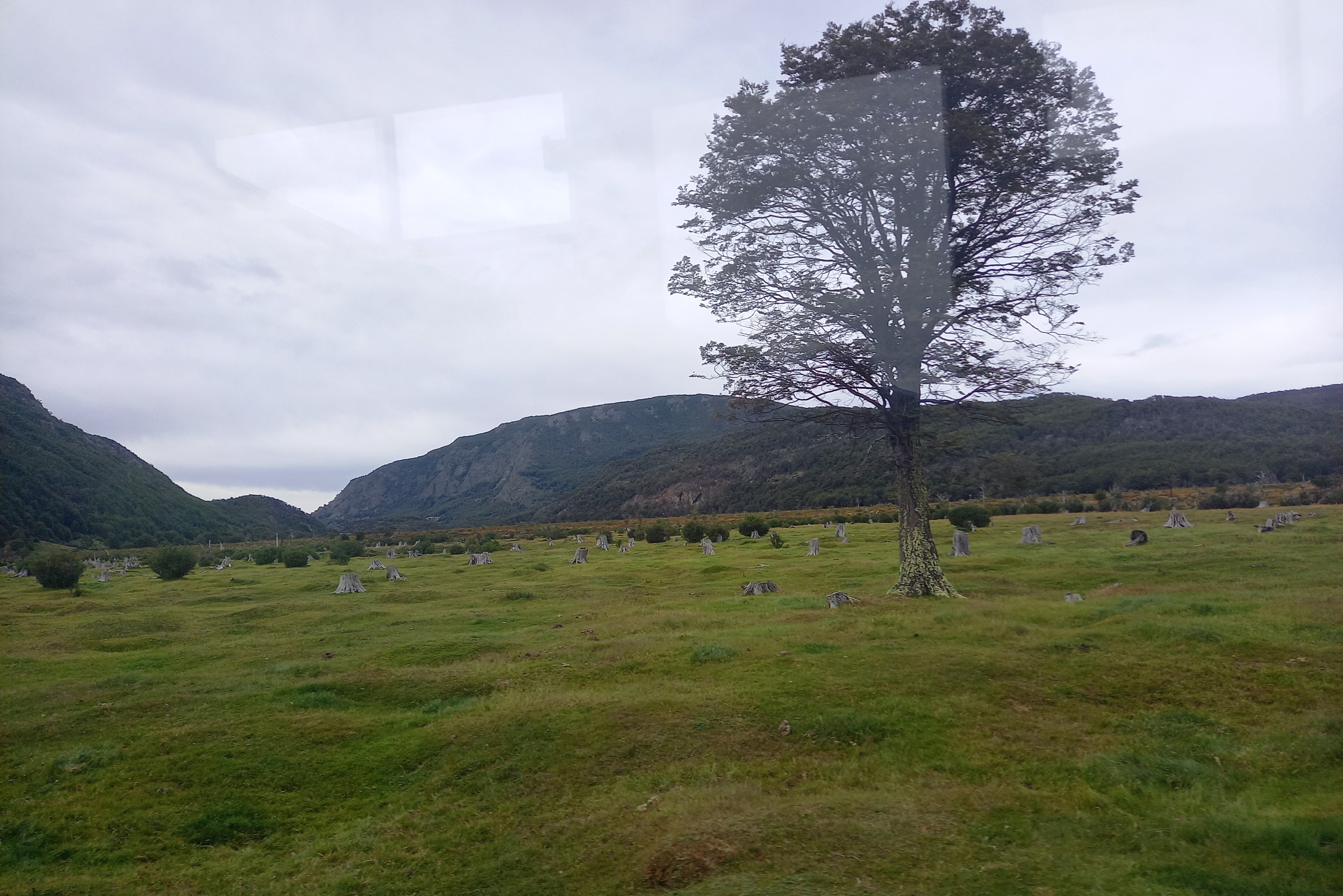 Il giorno dopo, si parte per il tour del Parque Nacional Tierra del Fuego. La prima tappa è all’Ensenada Zaratiegui, al margine settentrionale del Canale di Beagle, all’estremo sudovest del settore argentino dell’Isla Grande. Eh sì, qui siamo proprio a due passi dal confine col Cile, come del resto navigando nel Canale davanti all’Isola Navarino, che anch’essa è già Cile, come Capo Horn che si trova su un’altra isola qualche miglio più avanti. La Terra del Fuoco è divisa tra i due paesi con un taglio netto, due linee praticamente ad angolo retto tracciate con la squadra sulla mappa. Da qui si vedono la Isla Redonda, la Isla Heste (anche questa cilena), Punta Entrada e Punta Italam. E ci sono degli ottimi esempi di arboles bandera (alberi bandiera), tipici di queste latitudini, piegati dai fortissimi venti che spazzano la baia. Oggi fa indubbiamente fresco ma il vento non è particolarmente forte, tutto sommato ci va bene, se teniamo conto che in estate il vento può soffiare a 100 km/h con raffiche a 130. Come temperature, la media estiva è di 10°C, mentre d’inverno è 1°C (data la latitudine, potrebbe andare peggio). Qui c’è anche l’ufficio postale alla fine del mondo, che è ovviamente ottimo per i selfie, molto instagrammabile.