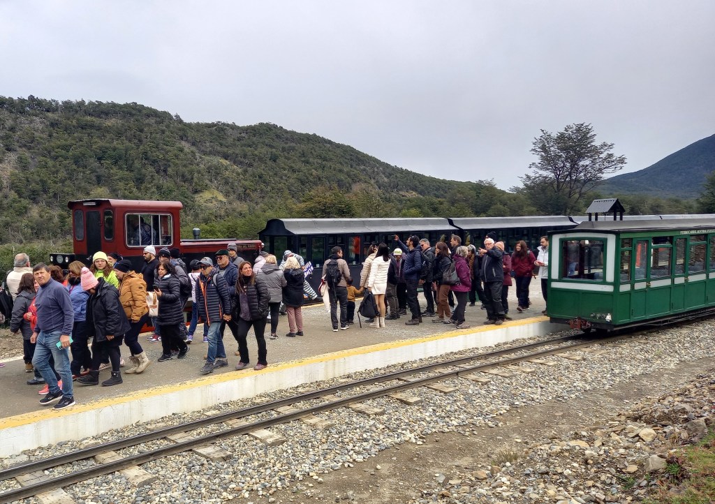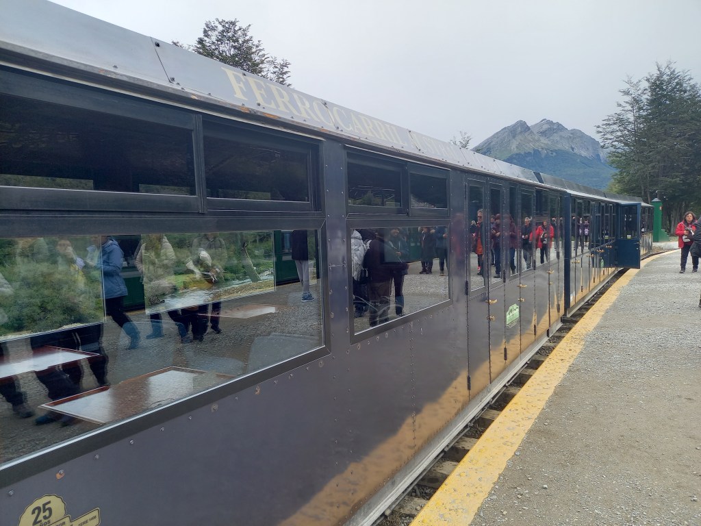 E si arriva poi alla stazione di partenza del trenino storico, una ricostruzione del treno che ogni giorno trasportava i carcerati condannati ai lavori forzati al tempo di Ushuaia colonia penale. I prigionieri erano impiegati soprattutto come taglialegna: servivano enormi quantità di legna per riscaldarsi nei gelidi inverni della Terra del Fuoco, e anche come materiali da costruzione. Era un lavoro svolto totalmente a mano e in condizioni durissime, soprattutto dal punto di vista ambientale: in inverno i detenuti lavoravano spesso nella neve fino alle ginocchia e con temperature impossibili. Ogni mattina dal carcere di Ushuaia partivano due treni di prigionieri: sul primo viaggiavano 20 di loro che avevano come compito quello di prolungare la strada ferrata che si montava su traversine di legna precedentemente tagliata dagli stessi carcerati. Un secondo treno partiva qualche ora dopo, alle 7 di mattina. Erano circa 90 prigionieri e 30 carcerieri armati di fucili. Un altro gruppo era composto dai cosiddetti ‘zelatori’, i quali non portavano armi ma davano ordini ai prigionieri, costretti a salire sui vagoncini, con i piedi incatenati che penzolavano nel vuoto e con le loro divise (prima a righe e poi grigie), pronti ad affrontare l’inclemenza del clima dell’isola. Ciò nonostante, preferivano quello anziché restare nel presidio. Veniva considerato, secondo alcuni storici, un premio alla loro buona condotta dato che, malgrado tutto, era la condizione più vicina alla libertà alla quale potevano aspirare.
