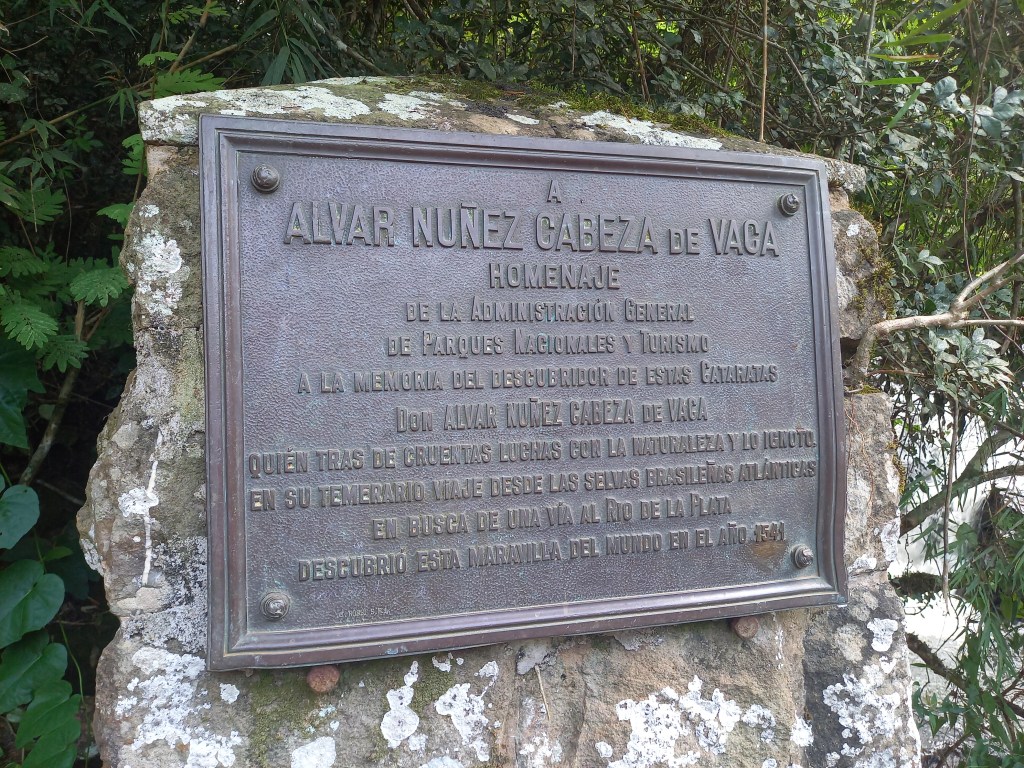Il conquistador spagnolo Alvar Nuñez “Cabeza de Vaca”, con la sua spedizione, fu il primo europeo a scoprire le cascate nel 1541. Secondo la tradizione dei guaranì, il popolo che vive da queste parti, le cataratas trassero origine dall’ira di una divinità della foresta, quando un guerriero di nome Caroba fuggì in canoa lungo il fiume con la fanciulla Naipur, di cui il dio si era invaghito. Infuriato, il dio fece crollare il letto del fiume davanti ai due amanti, creando una serie di tumultuose cascate nelle quali Naipur precipitò trasformandosi in una roccia. Caroba sopravvisse sotto forma di albero e sotto queste sembianze ancora oggi può osservare la sua amata.