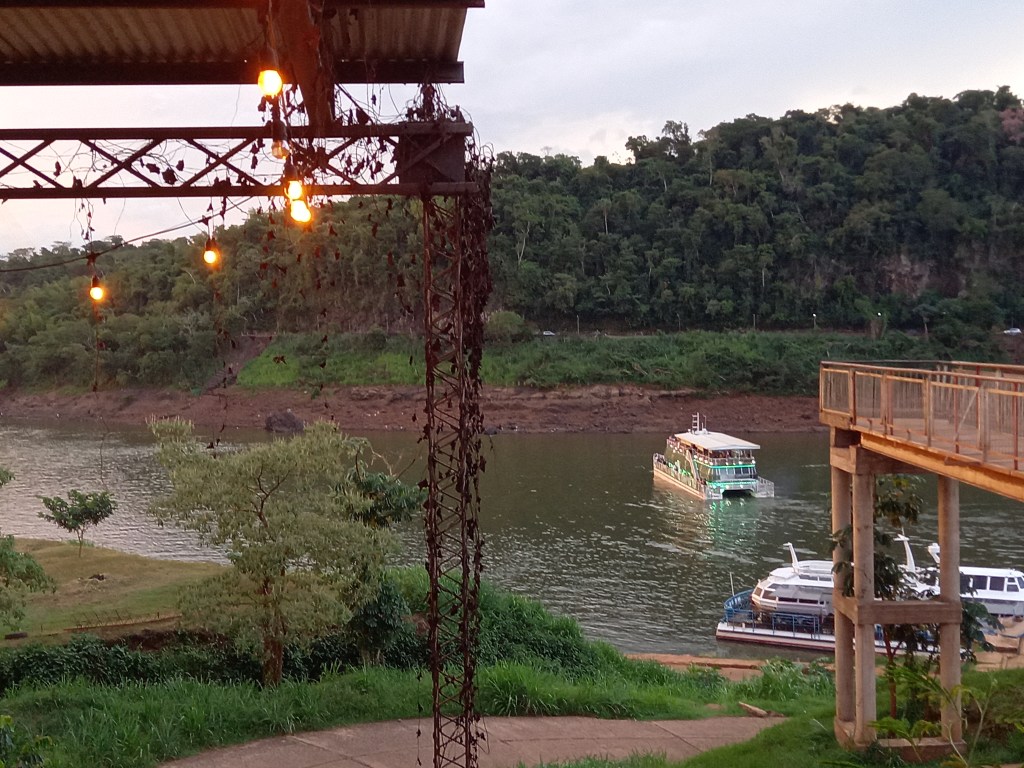 Finita l’escursione, un po’ di relax in piscina e poi si può andare alla scoperta di Puerto Iguazù, scendendo fino al fiume, e bersi una birretta guardando il Brasile sull’altra sponda e il Paraguay oltre la confluenza del Rio Iguazù col Rio Paranà.
