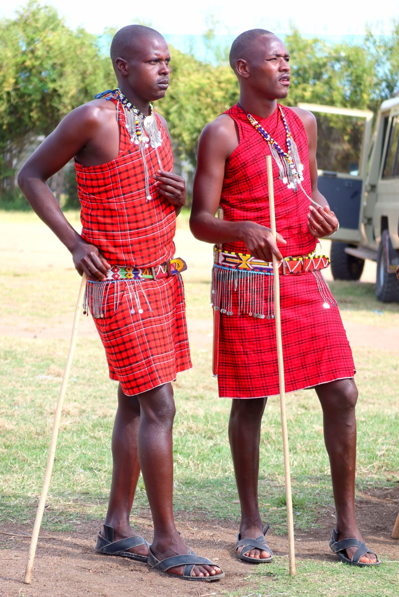 Dai soldati inglesi, i masai hanno acquisito le tipiche coperte scozzesi, con i motivi tradizionali del kilt. Queste coperte – chiamate shuka – di cotone a quadri con i colori predominanti rosso e nero sono diventate un simbolo del vestire masai. Oggi molti masai vestono usando due teli di cotone leggero che dalle spalle si incrociano sui lombi. Qui viene posto un terzo telo a coprire il bacino. Il tutto è fissato da una cintura di cuoio, e alla cintura è fissata una spada corta. Su questo vestito, i masai portano la shuka. Le donne preferiscono portare delle tuniche di colore blu, rosso o nero – il colore può indicare lo status sociale – a due strati.