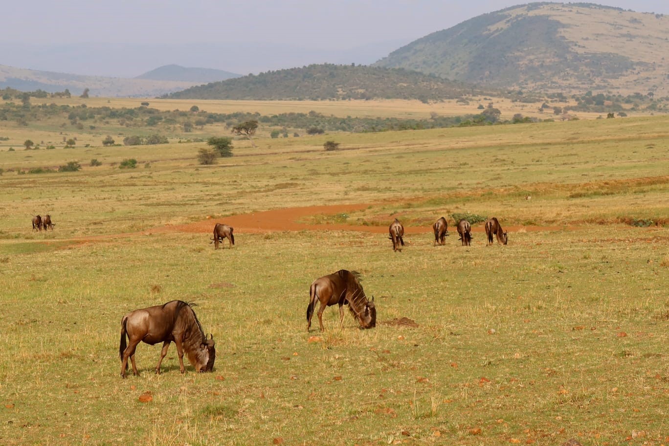 Sono moltissimi anche gli gnu, che qui vengono chiamati wildbeest. Il Masai Mara è per loro territorio di pascolo; c’è una grande migrazione che ogni anno, alla fine della stagione delle piogge, quindi a maggio-giugno, vede oltre due milioni di animali spostarsi verso nord dal Serengeti, in Tanzania, fino a qui. Quando arrivano – dice John – l’erba è alta quasi come la jeep, ora invece è corta perché hanno già mangiato tanto. Tra ottobre e novembre torneranno verso sud in un ciclo migratorio che interessa anche le zebre.