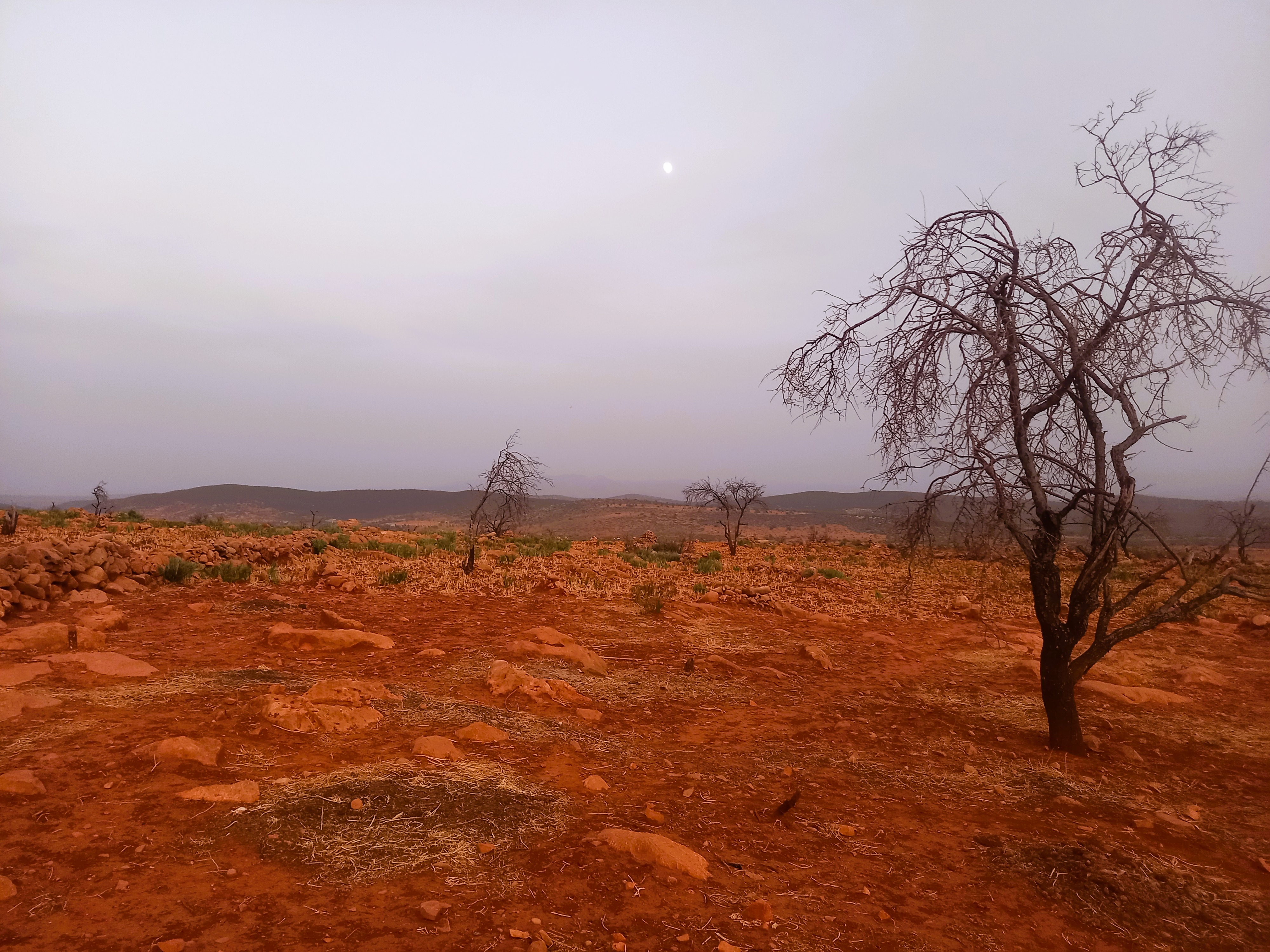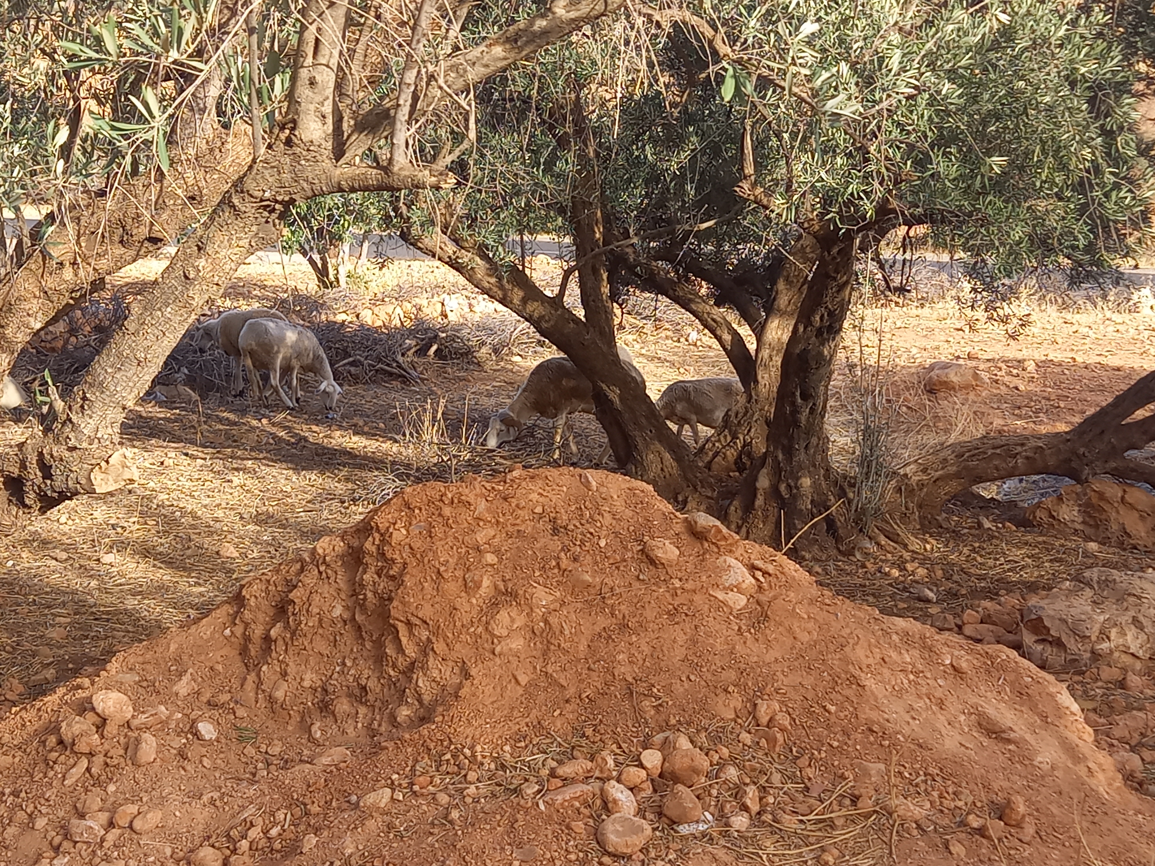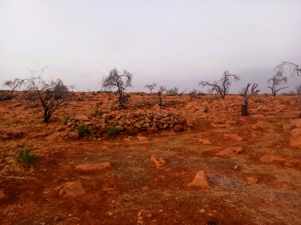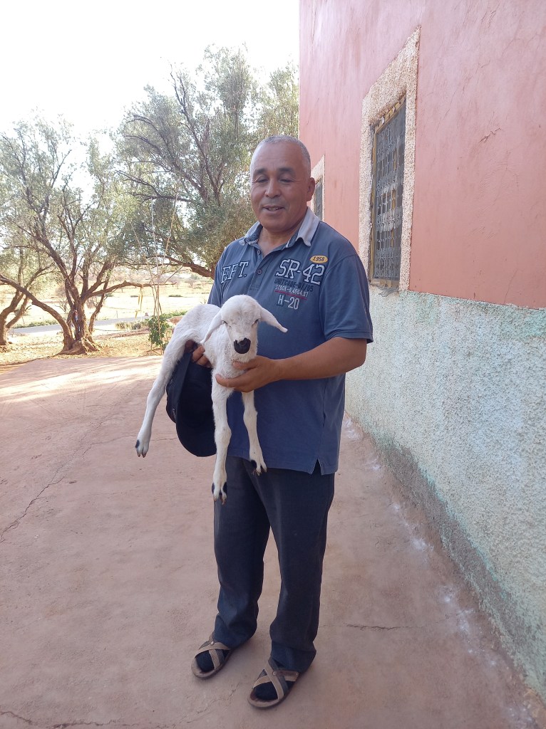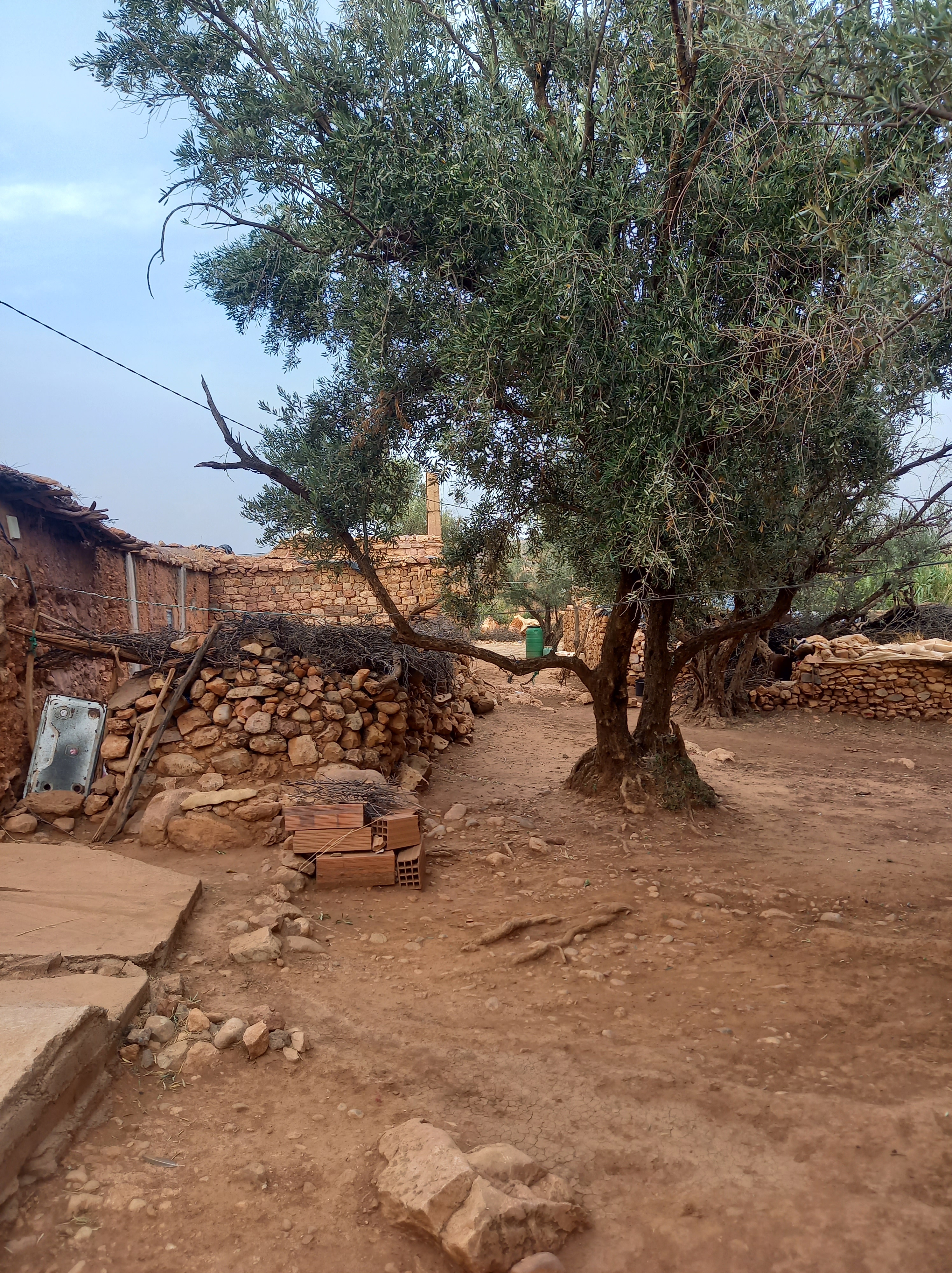 Ci sono anche quattro pecore e un montone, ma non più l’asino. Lo ha venduto perché non serve più per andare al souk carico di mandorle come un tempo. Nel suo terreno ci sono ancora gli ulivi ma i mandorli sono ormai pochissimi a causa della troppa siccità: non piove da marzo e anche prima ha piovuto davvero poco quest’anno, in estate poi sono anni che non piove quasi mai. Il clima è cambiato in questi ultimi anni; ora, le estati sono più lunghe e più calde: del resto ci sono 38°C e siamo a quasi 1200 m di quota, non ricordavo un caldo così neanche in agosto. Non è un problema da poco, dice lui, perché prima con le mandorle ogni anno campava più o meno tre mesi.
