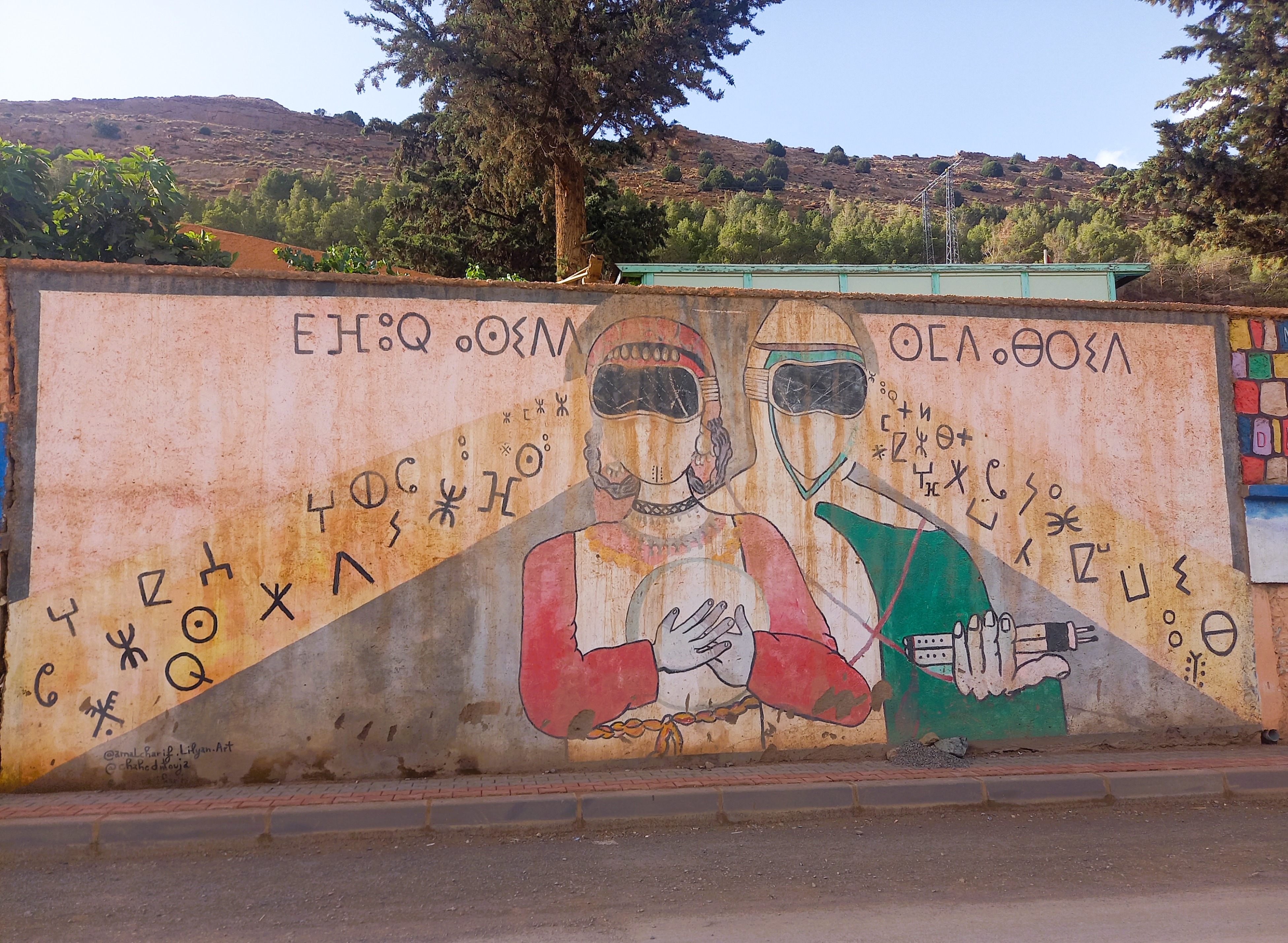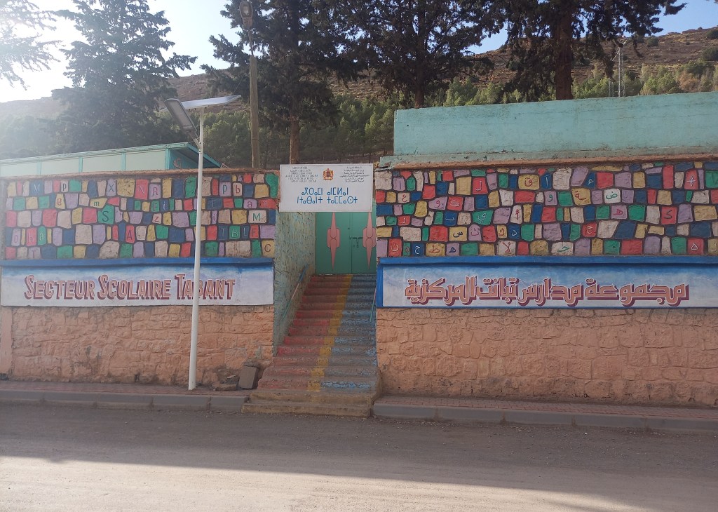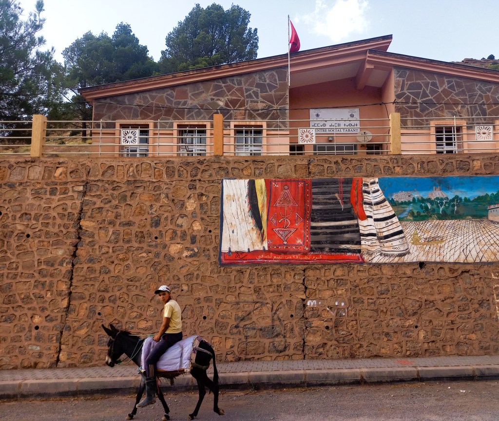 Rispetto a otto anni fa, mi pare che Tabant stia cercando di valorizzare di più le sue tradizioni berbere, come si può vedere dalle scritte in alfabeto berbero anche all’ingresso della scuola e da alcuni murales. Il problema della lingua, della cultura e dell’identità berbera è molto sentito in Marocco, perché i berberi sono almeno metà della popolazione. È una situazione che si trascina da decenni, quanto meno dall’indipendenza del 1956, ma in realtà anche da ben prima del periodo del protettorato francese, e non ha mai trovato soluzione. Già poter studiare il berbero come “seconda lingua” è una conquista piuttosto recente, le cose evolvono ma molto lentamente. Dal terzo anno di scuola primaria i bambini iniziano a studiare francese, che servirà anche se dovessero proseguire gli studi, perché se fino alle scuole medie le lezioni sono in arabo nelle università alcuni corsi sono tuttora soltanto in francese. Ma nelle zone rurali, in realtà, è già una gran cosa andare alla scuola primaria, soprattutto per le bambine. Solo una o due generazioni fa non era pensabile, tanto che il tasso di analfabetismo fino a pochi anni fa era del 70% da queste parti. Adesso, in teoria, l’obbligo scolastico è esteso ai 14 anni, ma tuttora molte famiglie non riescono a mandare i figli a scuola.