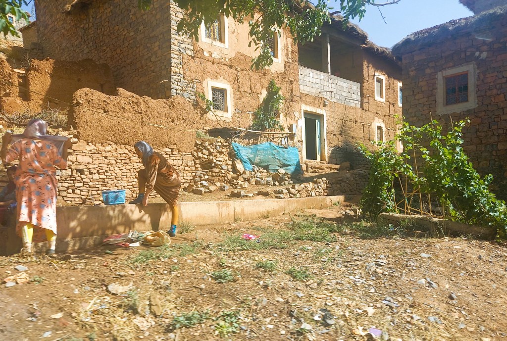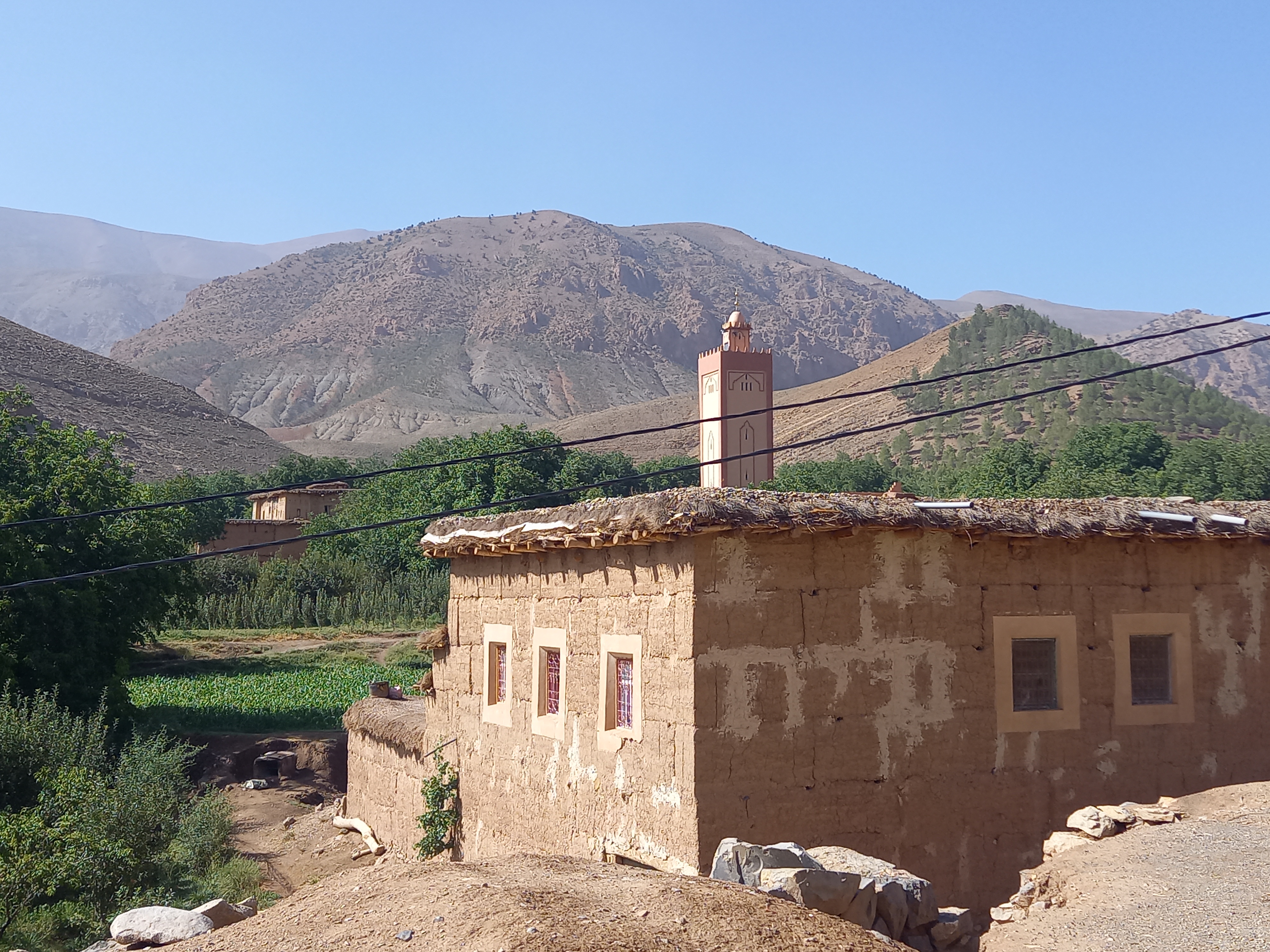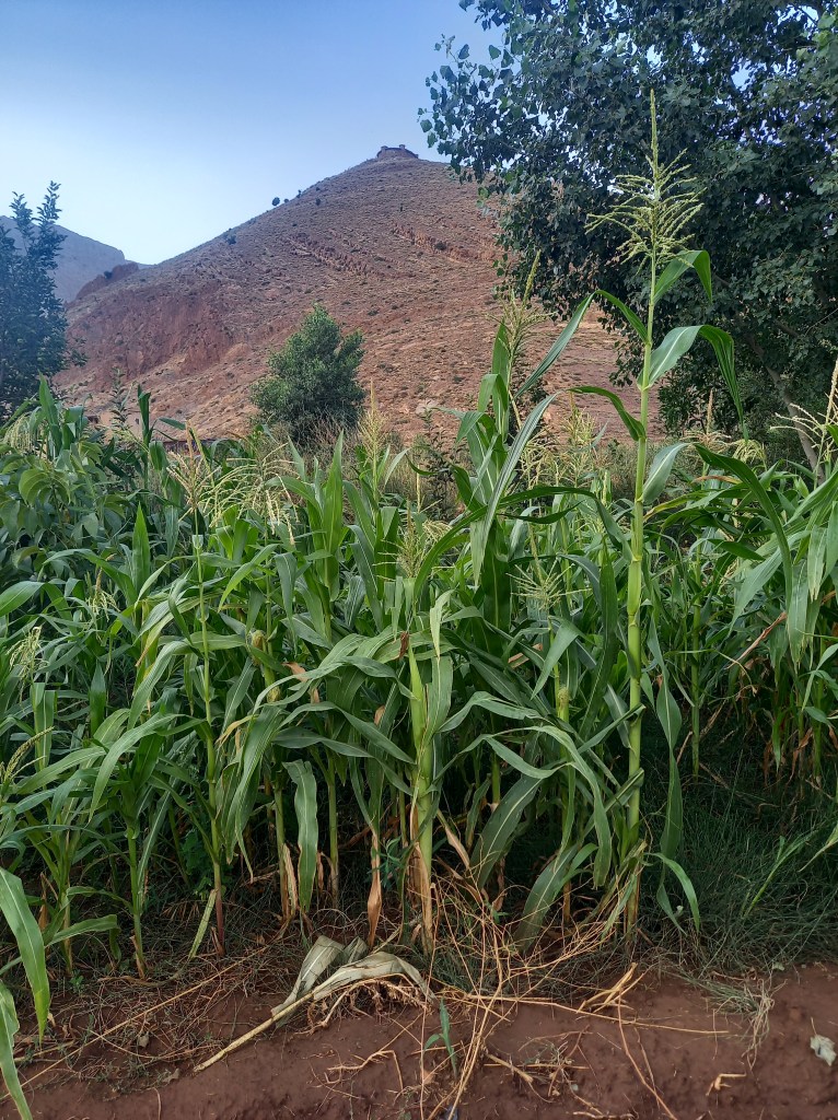 In generale la famiglia della moglie è un po’ più tradizionalista, tant’è vero che Salah mi ha raccomandato di indossare sempre i pantaloni lunghi finché saremo qui. Qui i pantaloni corti sono riservati solo ai bambini, per un uomo non è considerato dignitoso portarli, un po’ come era anche da noi fino a 60-70 anni fa. Ho precisato che di lunghi ne ho un solo paio e che spero di non sporcarmi, ma ho accettato di buon grado. Avrei potuto obiettare che l’altra volta ricordo di aver messo i bermuda senza che nessuno si scandalizzasse particolarmente, ma non è il caso di discutere. In fondo qui fa anche decisamente meno caldo rispetto ad Ait Taguella, almeno 10° meno. La valle ha un clima particolare, più fresco e piovoso, e a questo si deve l’abbondanza di verde e di alberi da frutta. È anche per questo che Maryam e i ragazzi ogni estate passano un mese qui, per andare a trovare i parenti ma anche per stare un po’ più al fresco.