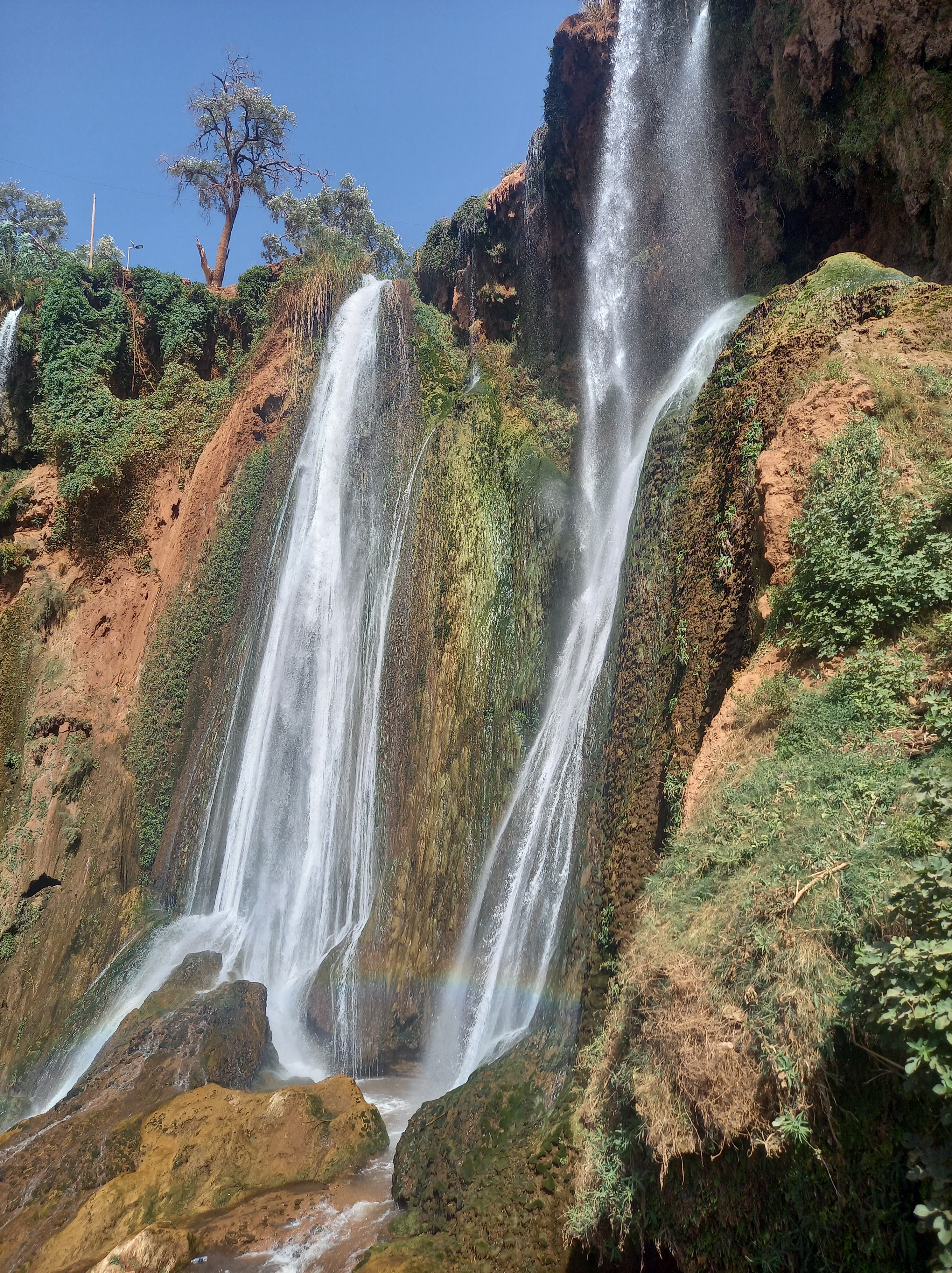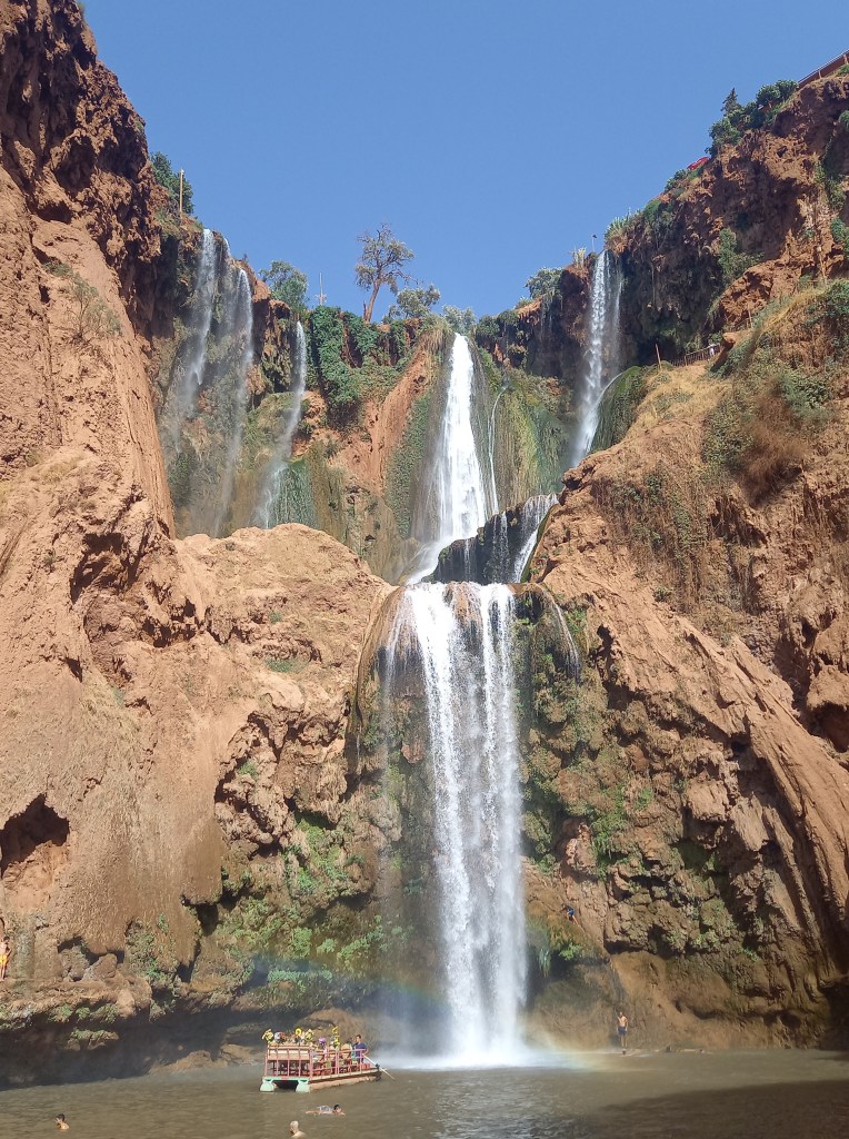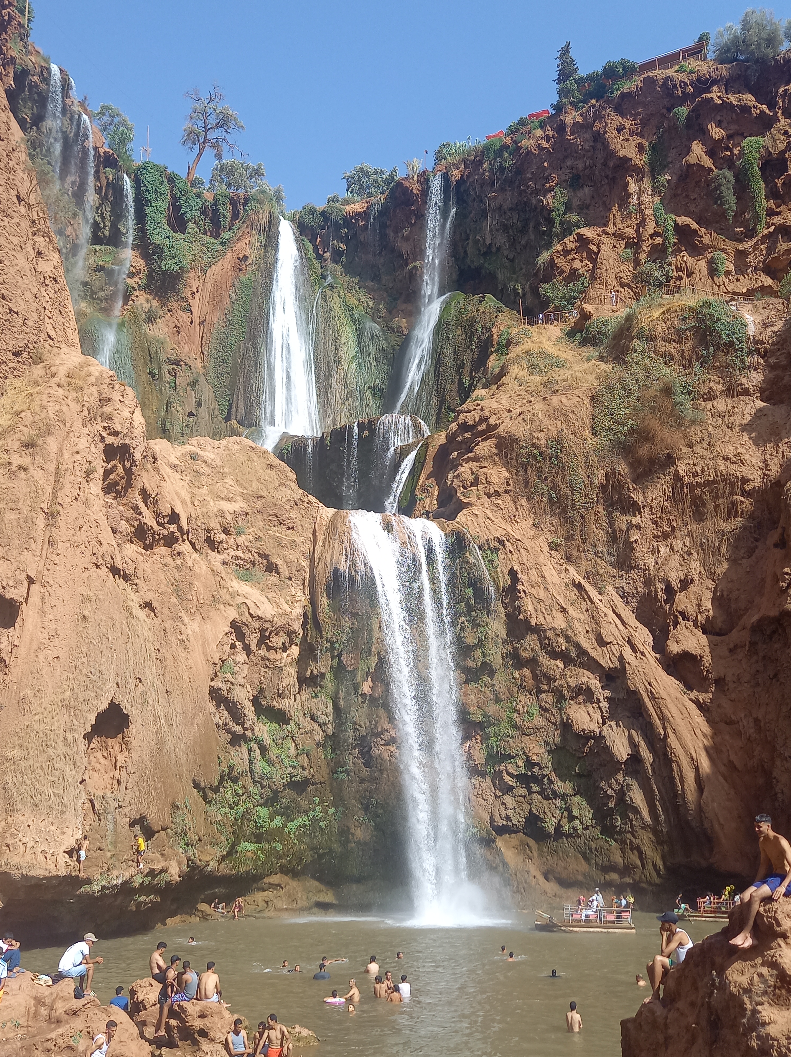 Nonostante tutto, o meglio se cerchi di non guardare tutto quello che c’è intorno, rimane uno spettacolo naturale mozzafiato. Il fiume Oued Ouzoud precipita sempre per 110 m nel canyon di Oued el-Abid, tra le montagne di arenaria rossa, in una meravigliosa cascata a tre salti; puoi sempre scorgere l’arcobaleno che la luce del sole forma tra le goccioline, aspettando che qualche ragazzo si tuffi da una nicchia nelle pareti rocciose. Le barchette nelle pozze alla base delle cascate, però, sono diventate veramente un po’ troppe.