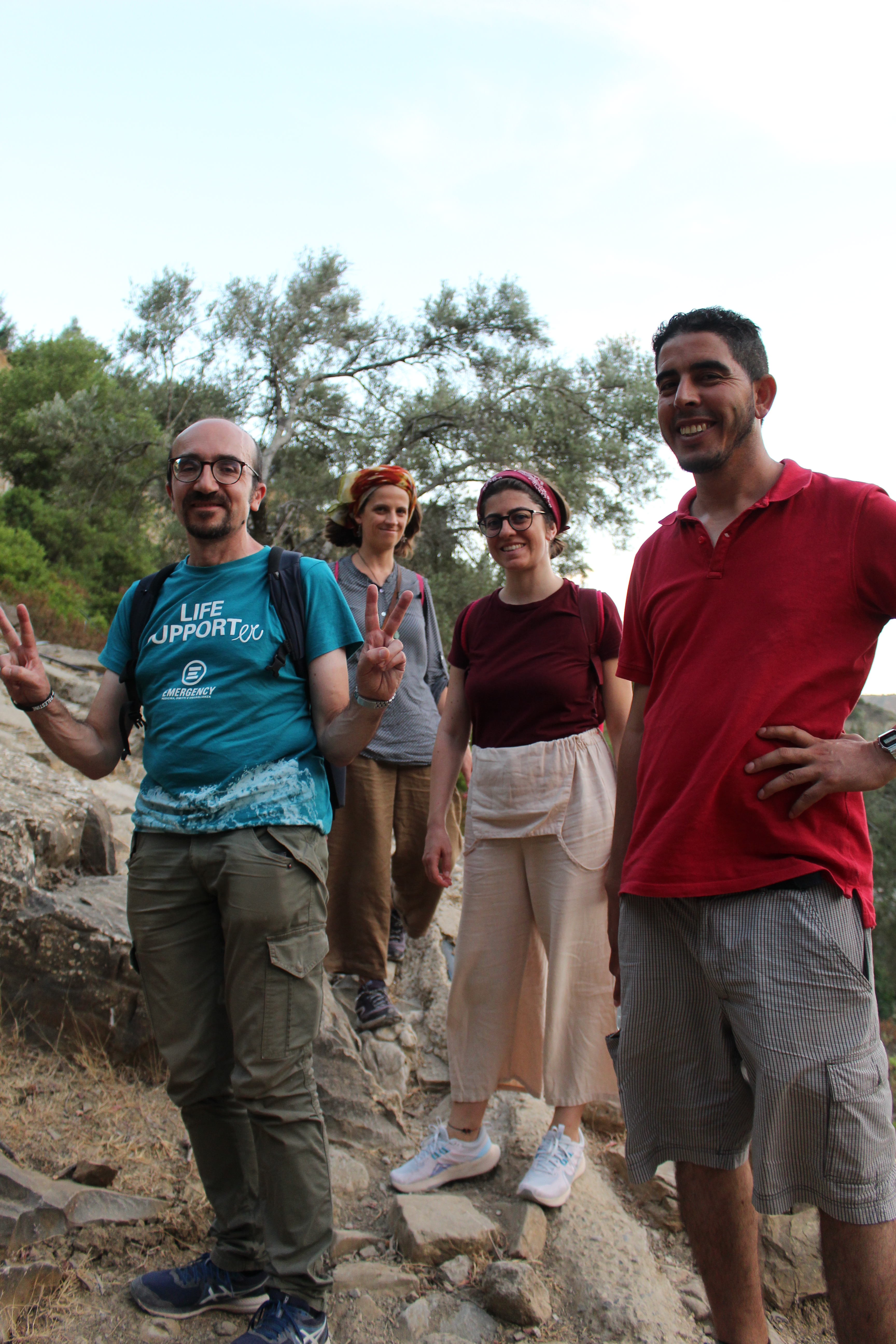 Dopo pranzo il sole picchia forte, e dal momento che da Mokrisset dovremo fare circa un’ora di trekking per raggiungere il piccolissimo villaggio dove dormiremo, non è il caso di partire prima delle 17-17.30. Ci concediamo quindi, con il permesso della famiglia, un pisolino sui divani del salottino. Al risveglio, un altro tè per salutarci e fare ancora quattro chiacchiere con loro grazie a Toufik che ci fa da interprete. Il più curioso e quello che ha più voglia di giocare con noi è il piccolo Rayan, un bambino con la maglietta del Barcellona e un sorriso impertinente che porta lo stesso nome del bambino di 5 anni che, poco lontano da qui, è morto dopo essere caduto in un pozzo nel 2022. I soccorritori sono riusciti a tirarlo fuori dopo cinque giorni, ma aveva riportato ferite troppo gravi nella caduta. Tutto il paese ha pregato per lui e seguito le interminabili dirette tv, ma non c’è stato niente da fare. Una storia tragicamente simile a quella di Alfredino Rampi, il bambino di Vermicino per cui tutta l’Italia, compreso il presidente Pertini che si era recato sul posto, pianse nel giugno del 1981.