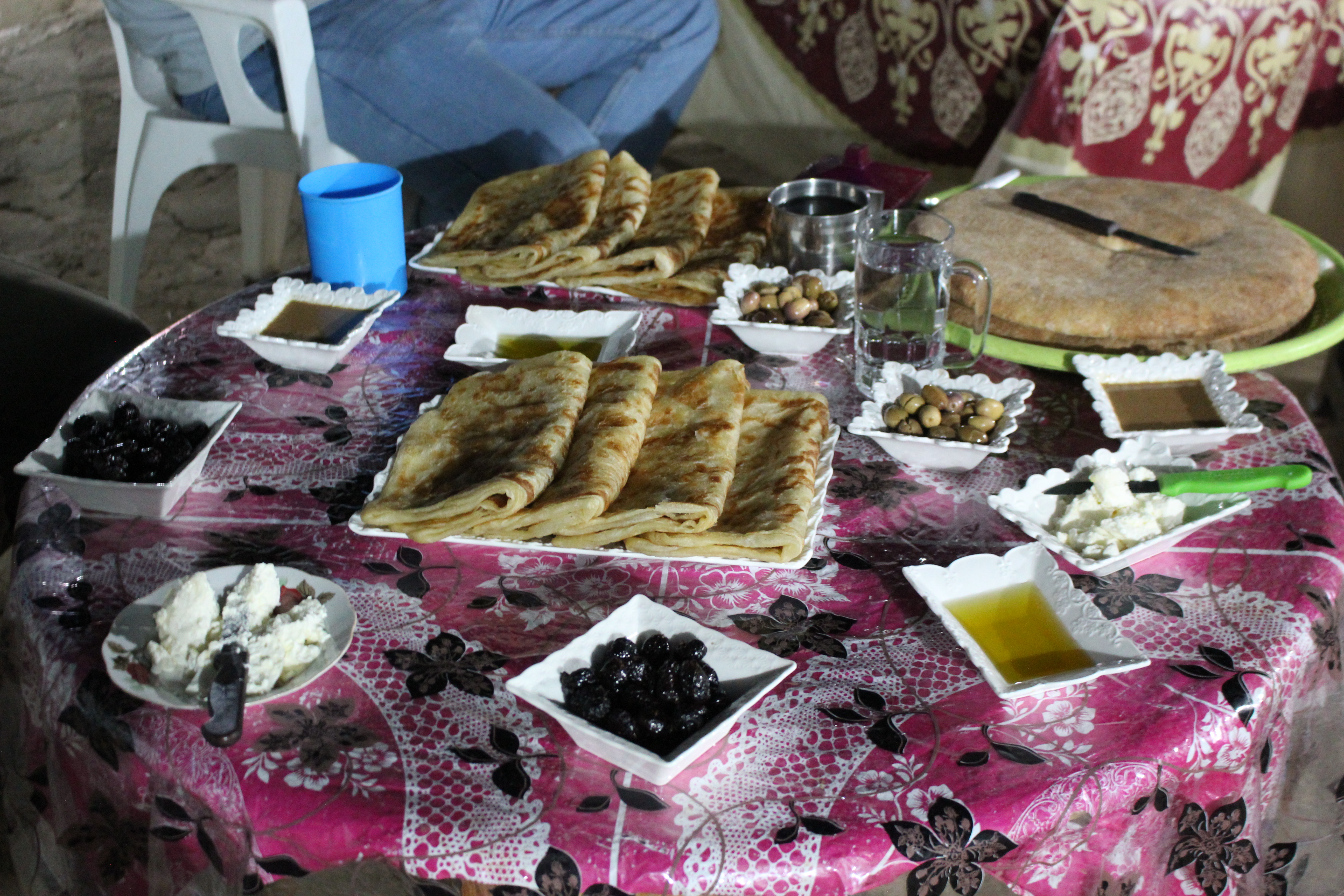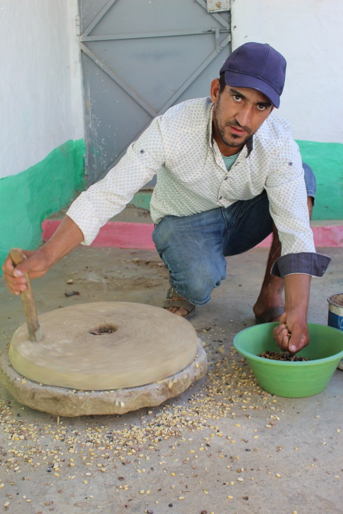 Con qualche pausa, riusciamo abbastanza agevolmente a compiere l’impresa e raggiungiamo questo piccolo agglomerato di casette che si chiama Jnane, come la cooperativa dei fichi. Jnane significa giardino, ed è il nome giusto per un posto così. Anche qui l’accoglienza è calda, con il tè e tanto cibo: pane, msemmen, olive verdi e nere, formaggio di capra, olio e tahina (crema di sesamo). E questo è solo l’inizio…
