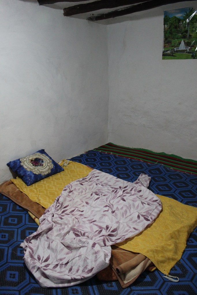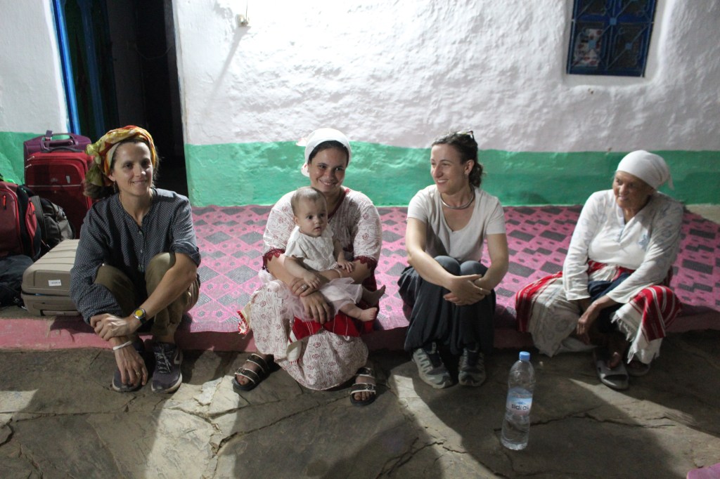 Al risveglio, cerco di sondare il terreno con le ragazze per sapere come è andata la prima notte senza un letto comodo e anche come è stato il primo approccio con i bagni delle case di montagna marocchine, che per come siamo abituati noi, ecco, non sono proprio comodissimi, mettiamola così. Sì, perché dovete sapere che, a parte dover condividere un solo bagno tra noi e con la famiglia (e conosco molte persone che inorridirebbero già qui, al solo pensiero), il bagno di queste case è generalmente un piccolo locale dove c’è solo un gabinetto alla turca e un rubinetto dal quale si attinge l’acqua; si riempie un secchio e ci si lava così. Niente doccia, niente lavandino e spesso niente specchio. Bisogna un po’ arrangiarsi, insomma. Ovviamente non è una sorpresa, in fase di prenotazione del viaggio ci è stato detto e ripetuto che serviva un po’ di spirito di adattamento. Però non vi nascondo che, ciò nonostante, un minimo di preoccupazione per come se la sarebbero vissuta loro, non conoscendole, ce l’avevo, anche perché negli ultimi anni mi è successo di avere qualche compagno/a di viaggio che quanto a capacità di adattarsi a queste situazioni… be’, insomma, avete capito: male male. E invece niente, sono proprio brave. La più sorridente di tutte è Martina, che ha dormito all’aperto sotto le stelle e forse ha fatto la scelta giusta; ma tutte mi rassicurano immediatamente, e così mi rassereno definitivamente anch’io. Mi sto trovando benissimo con loro ed ero già sufficientemente sicuro che problemi non ce ne sarebbero stati, ma ora ogni più piccolo dubbio è dissipato.