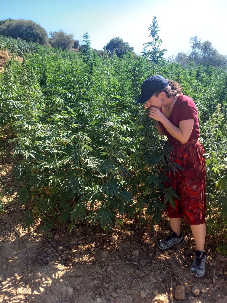 Qualche anno fa, in questa zona, si era diffusa molto la coltivazione di cannabis, che è un altro prodotto tradizionale del Rif, ma ora c’è più controllo da parte delle autorità e quindi il fenomeno si è un po’ ridimensionato. Il Marocco, sebbene non vi siano ovviamente cifre ufficiali, è considerato il maggior produttore di hashish del mondo e queste montagne sono, almeno dalla fine del XIX secolo, il territorio dedicato a questa produzione. Secondo alcune stime il kif, come viene chiamato qui, è coltivato da almeno 300-400 famiglie e dalla produzione trovano sostentamento in maniera più o meno diretta qualcosa come due milioni di persone. È uno dei modi in cui, storicamente, il popolo del Rif ha reagito all’indifferenza dello stato centrale sfruttando a proprio vantaggio l’isolamento e la scarsa presenza delle istituzioni. Il kif propriamente detto è una miscela di fiori, foglie e steli di cannabis mescolati con foglie del tabacco locale chiamato Taba. Il modo tradizionale di consumare cannabis in questa zona è fumare questo composto, ben essiccato e frantumato, con la tradizionale pipa, il Sebsi.