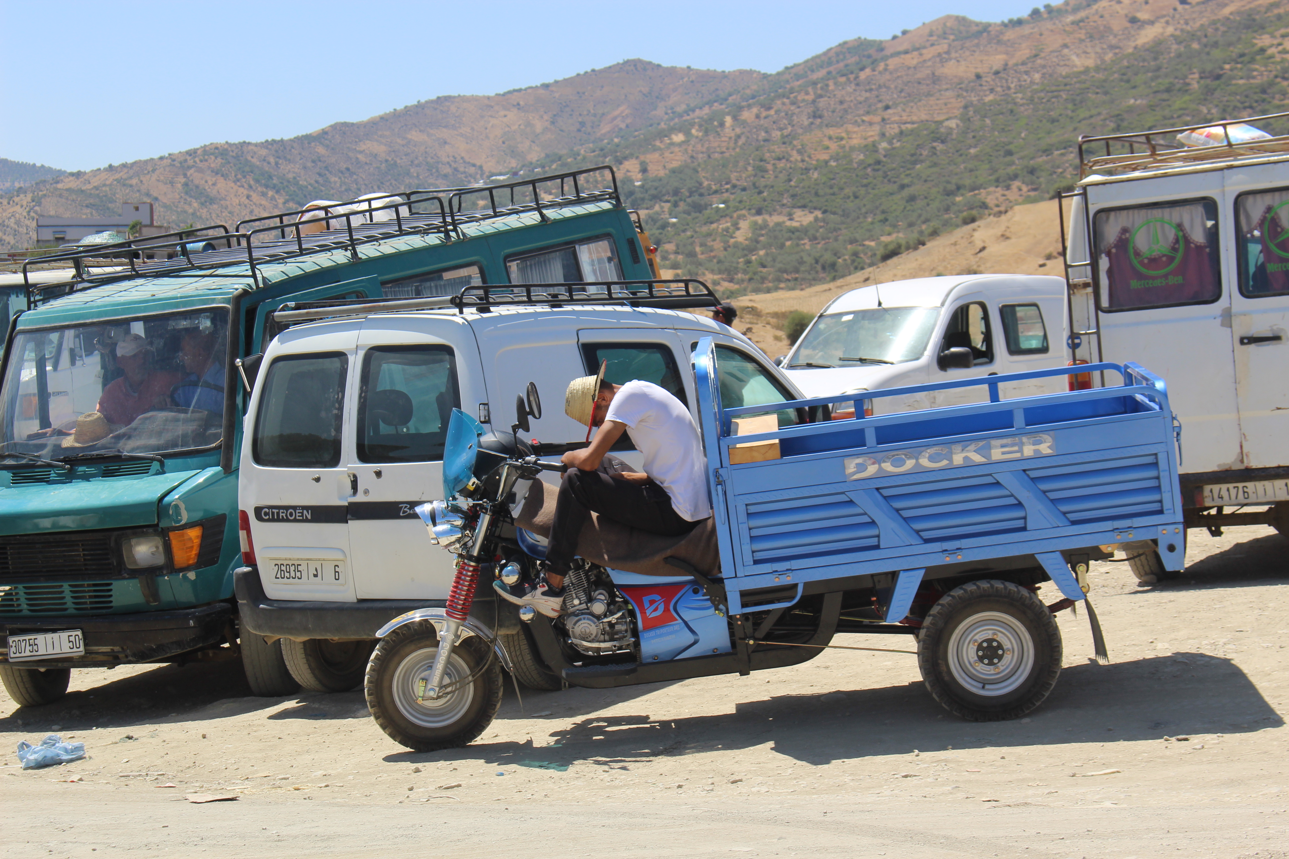 Stiamo cominciando a scoprire quali sono i gusti musicali di Mostafa, che ogni tanto ci concede di fare qualche “richiesta” ma in genere tiene ben saldo il controllo della programmazione. Per quanto abbiamo capito finora la musica marocchina non gli dispiace, ma solo a piccole dosi; probabilmente lo fa per accontentarci, perché lui preferisce decisamente Bob Marley, che peraltro ha capito che apprezziamo anche noi. Con un po’ di fantasia ce lo immaginiamo rasta, mentre ondeggia agitando i dreadlocks sul ritmo in levare della musica del vecchio Bob… diciamo che in generale, anche per banali questioni anagrafiche, ha una chiara predilezione per la musica anni ’70-’80. Purtroppo pare che gli piaccia anche Al Bano… forse è l’unico cantante italiano che conosce e anche in questo caso lo fa per far piacere a noi, ma dato che le nostre reazioni non sono entusiastiche eppure lui insiste, cominciamo a temere seriamente che piaccia a lui.